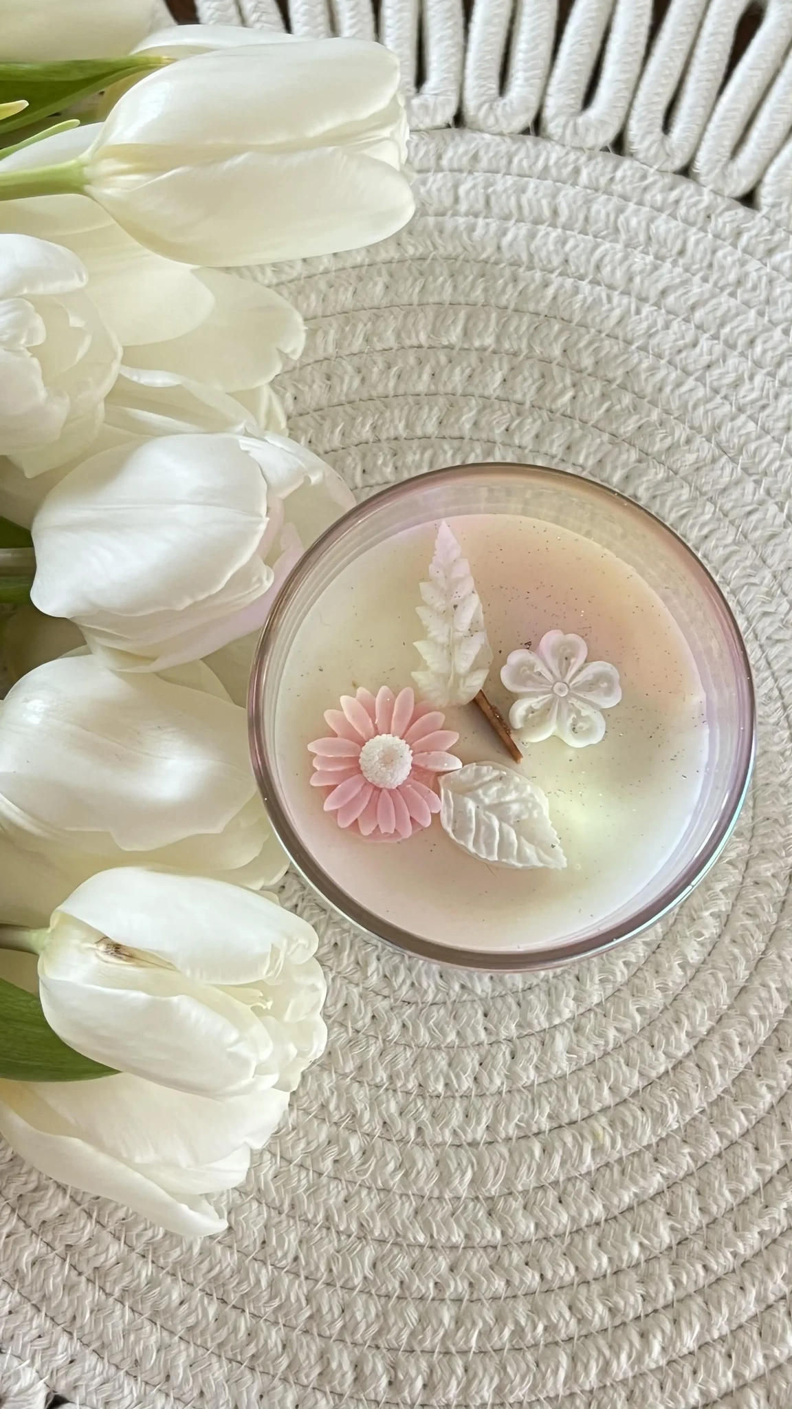See küünal on tõeline kevadekuulutaja – nii oma välimuse kui ka lõhnade poolest. Küünal on käsitööna valatud 100% looduslikust sojavahast.