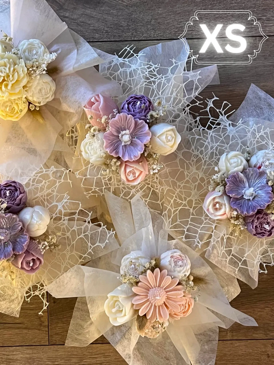 XS - karbike diameetriga 6,5 cm, 5 keskmise suurusega õit